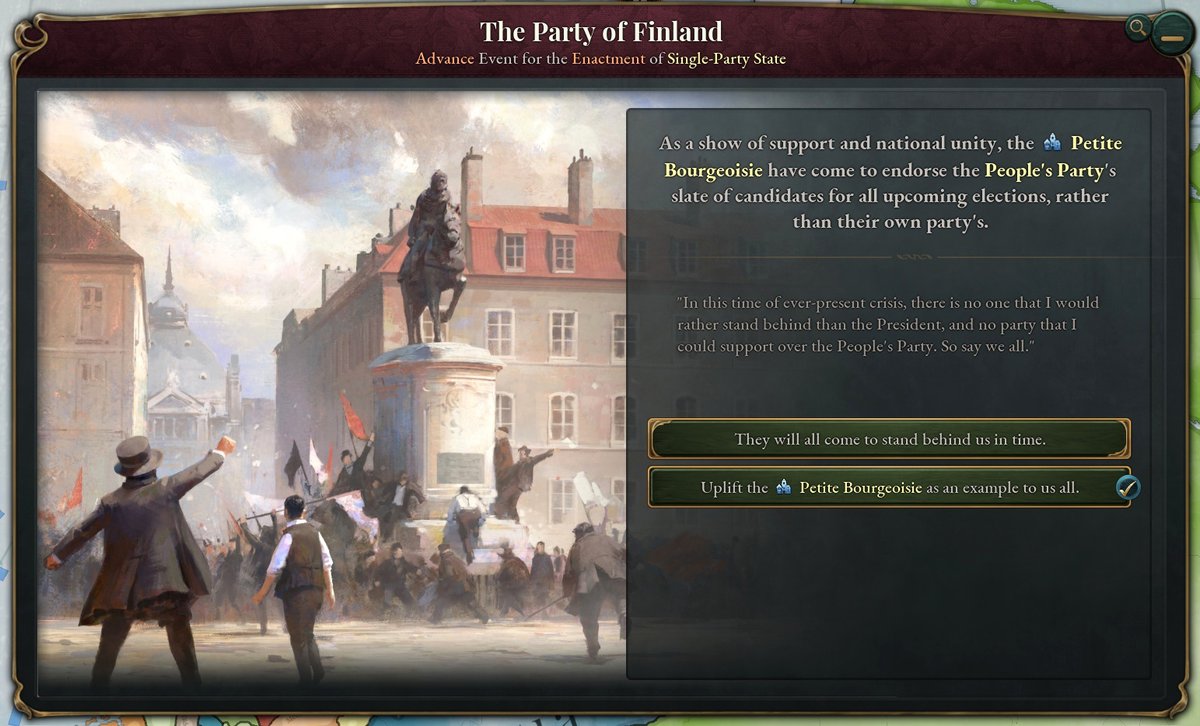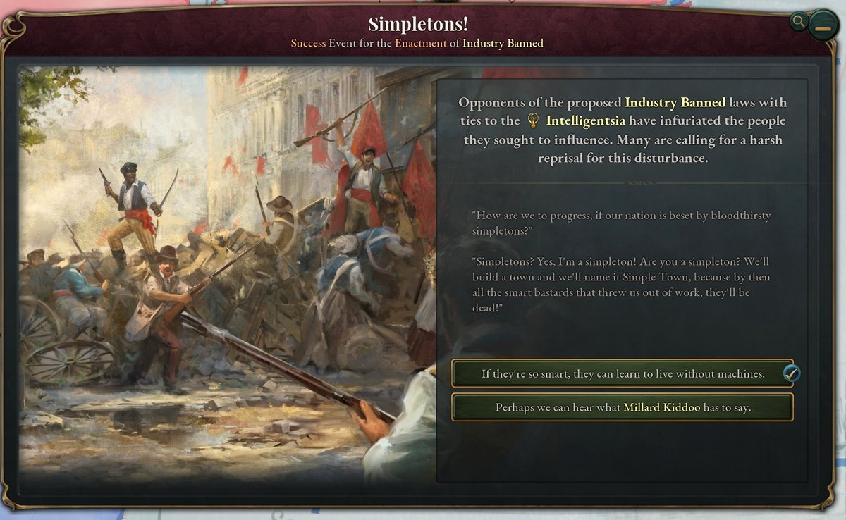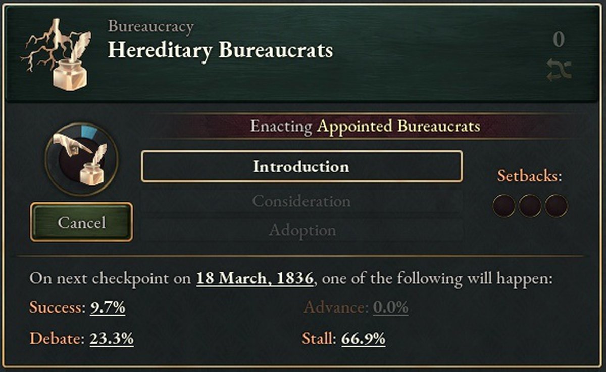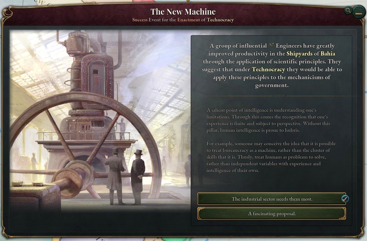 Сейчас сосредоточились авторы на блоке внутренней политики. Здесь они хотят поменять процесс принятия законов, революции, добавить новые законы, а также сделать больше механик для персонажей.