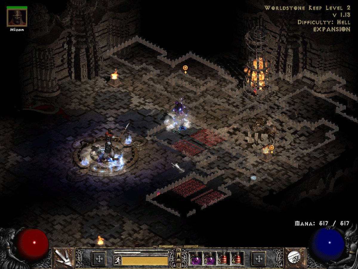 Оверлей с картой присутствовал в первой и второй частях Diablo, заметно упрощая исследование подземелий. Полупрозрачная карта с контурами стен выводилась поверх обычного игрового интерфейса.