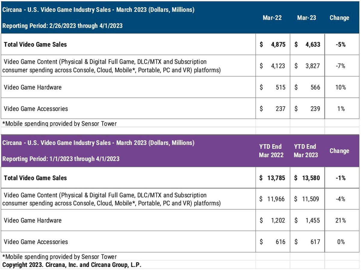 Общий объем рынка в марте аналитики оценивают в $4.6 миллиарда — на 5% ниже, чем в том же месяце 2022 года. Рост продаж консолей не смог компенсировать падение выручки от продажи игр и внутриигрового контента.