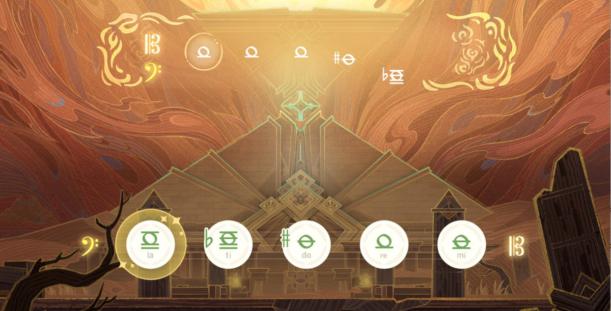 Чтобы получить все 40 примогемов, надо исполнить 5 мелодий на старинной лире. От игроков требуется проигрывать нужные ноты, следуя указаниям.