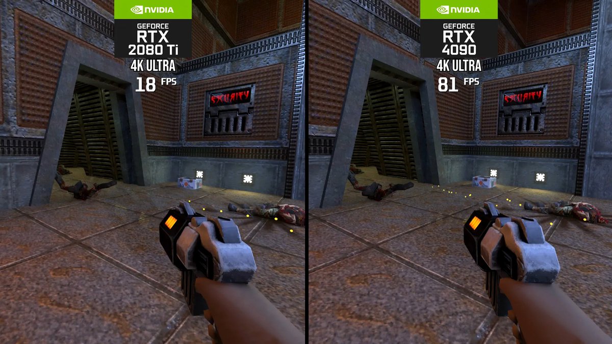 В 2019 году Nvidia выпустила Quake 2 RTX, ремастер оригинального шутера с новым рендером на базе трассировки пути. Технология оказалась тяжелой: GeForce RTX 2080 Ti выдавала порядка 20 кадров в секунду в разрешении 4К.