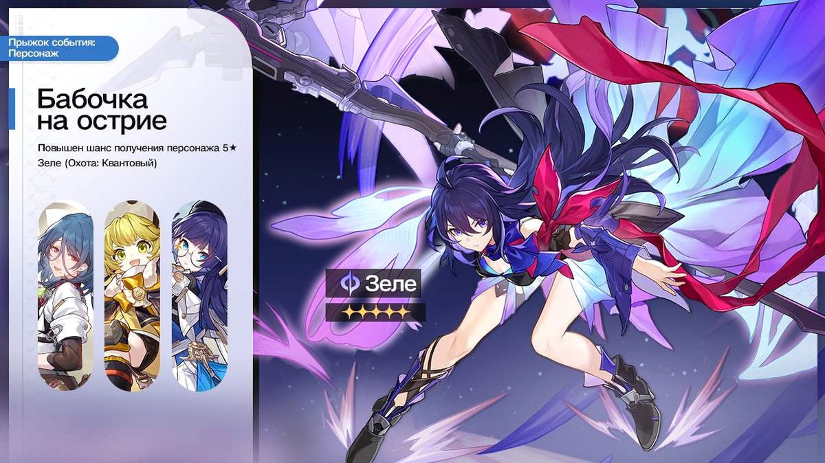 - Бабочка на острие:- В обмен на Особые звездные пропуска можно получить персонажей: Зеле (5 звезд редкости), Наташу, Хука или Пелу (по 4 звезды редкости)