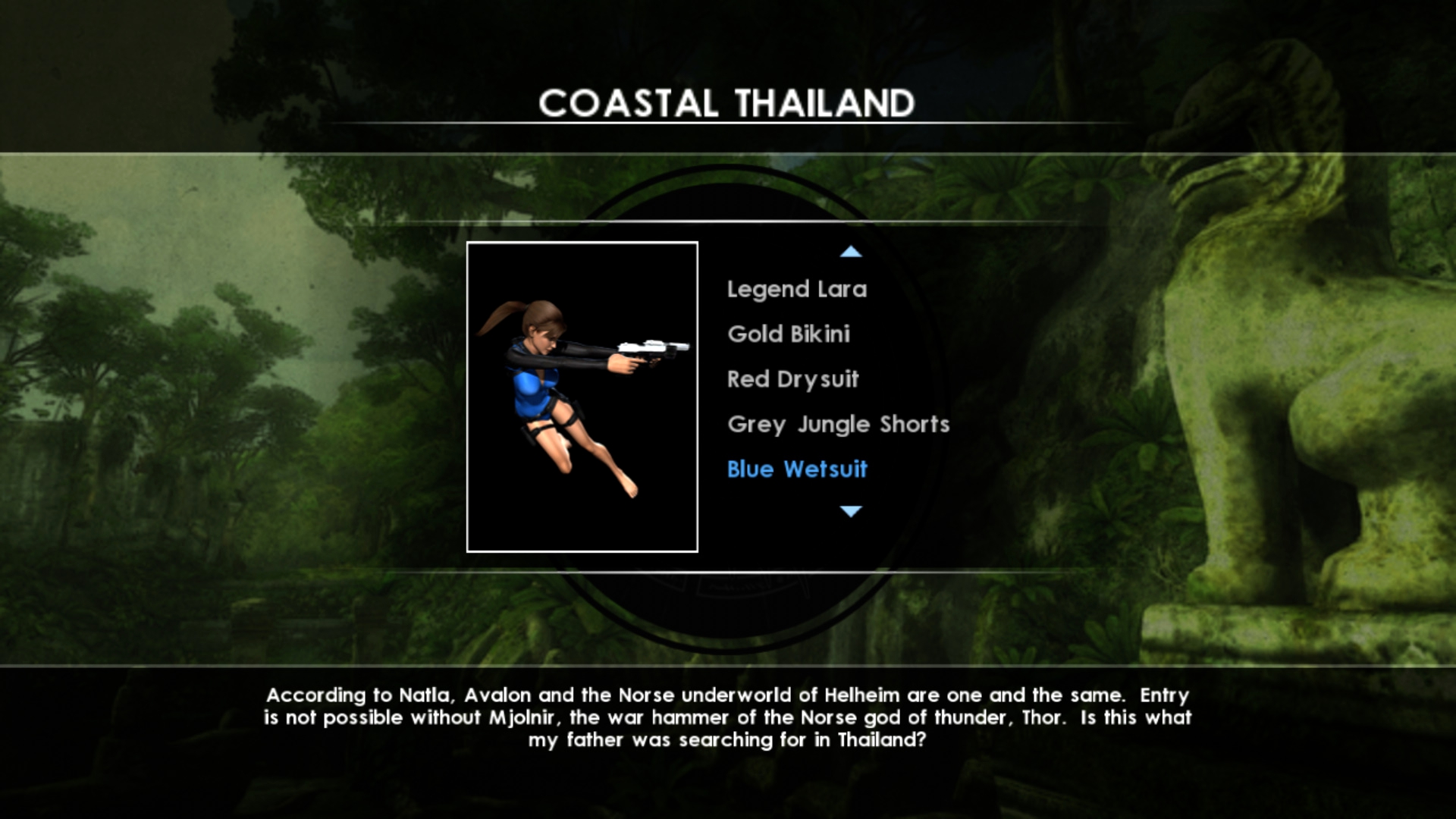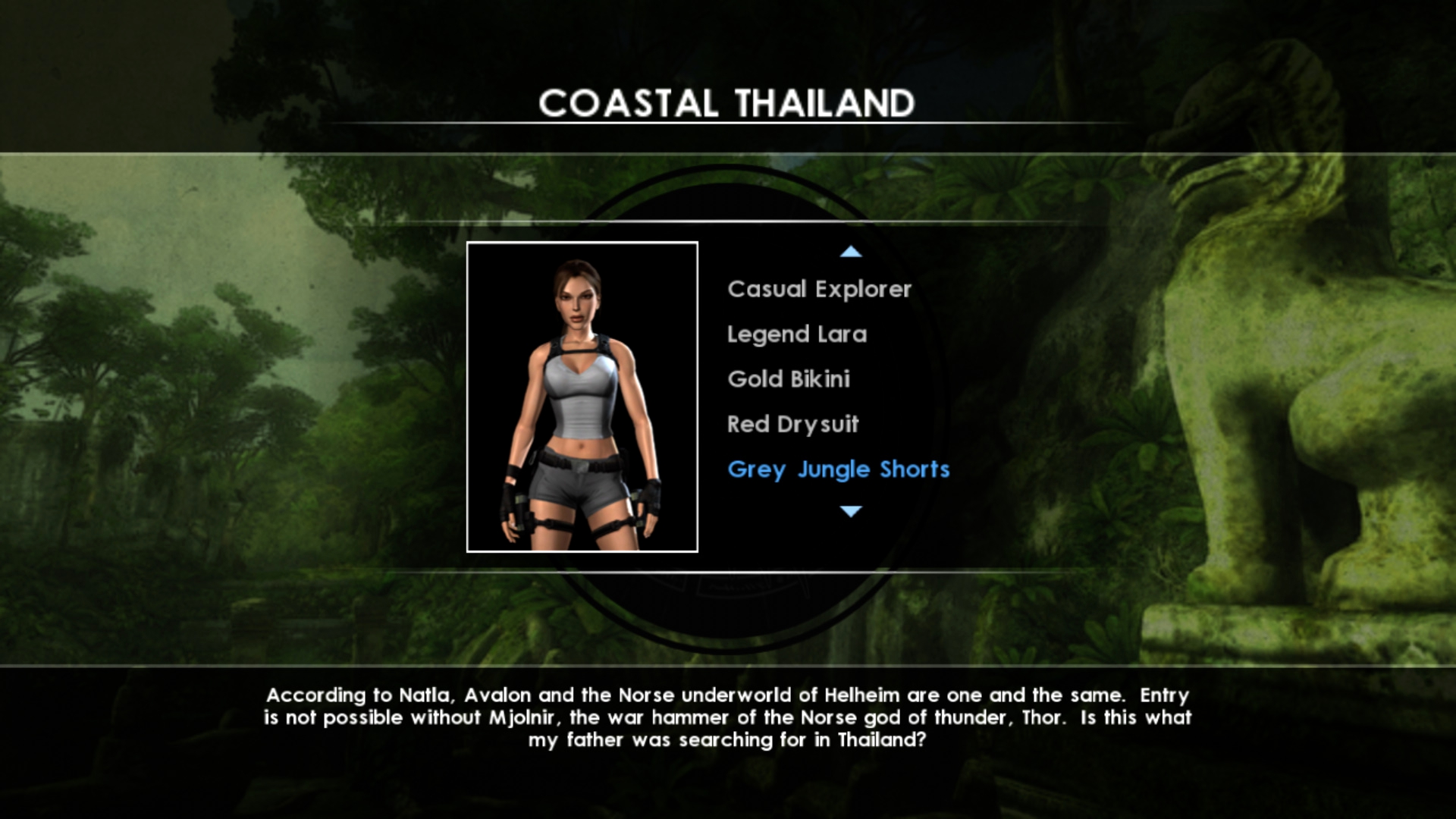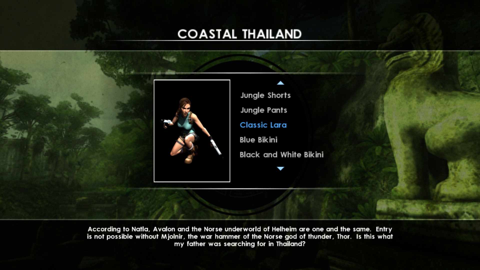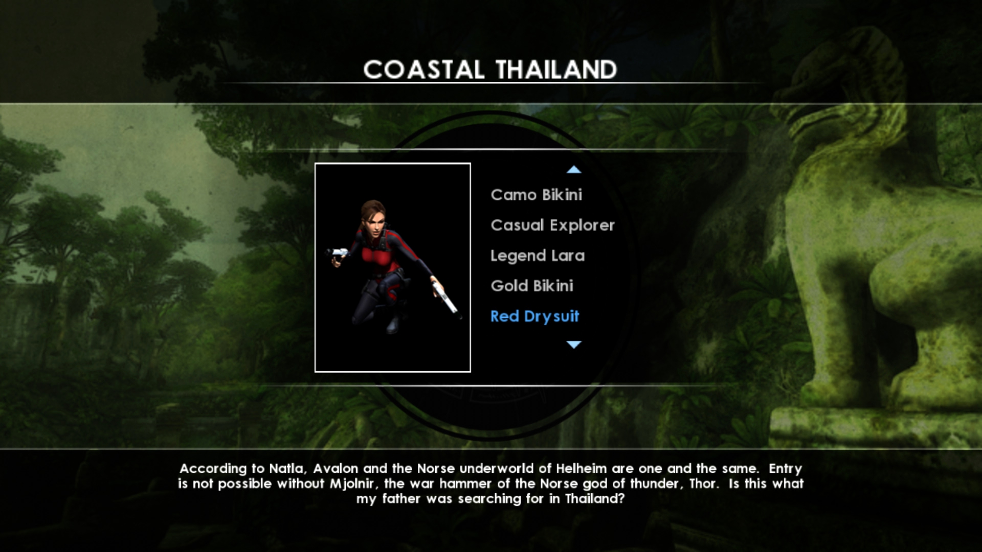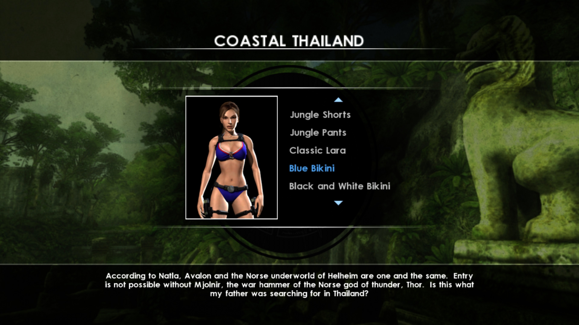 Итак, что же нам предлагало DLC: 4 бикини разной расцветки, классический костюм образца 1996 года, костюм из Tomb Raider: Legend, костюм исследователя, два водолазных костюма, а также дополнительная расцветка костюма исследователя джунглей.