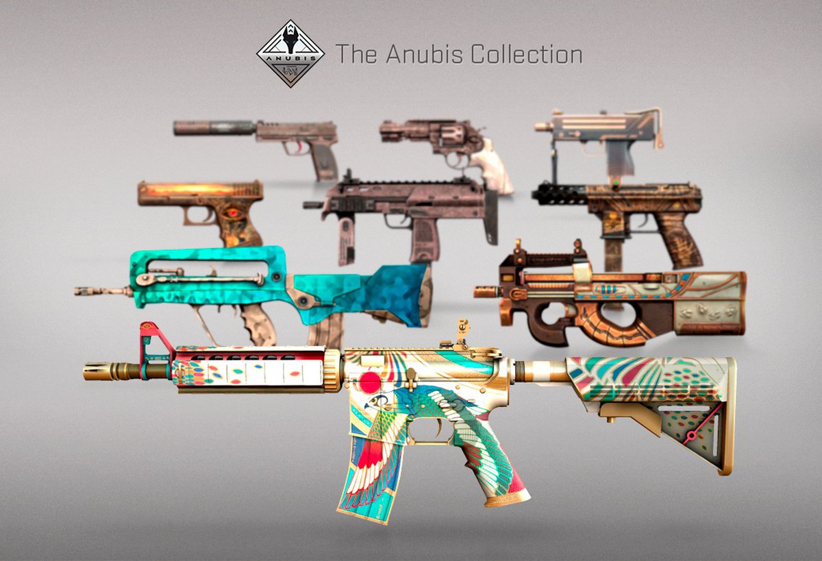 В общей сложности в коллекцию Anubis входит 19 тематических скинов для оружия. Скины выполнены в стиле одноименной карты.