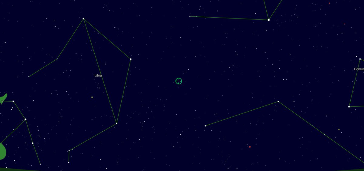 Искать астероид нужно в созвездии Весов. Впрочем, предупреждает In The Sky, в некоторых регионах России может быть нелегко увидеть астероид: он поднимется над горизонтом всего на несколько градусов.