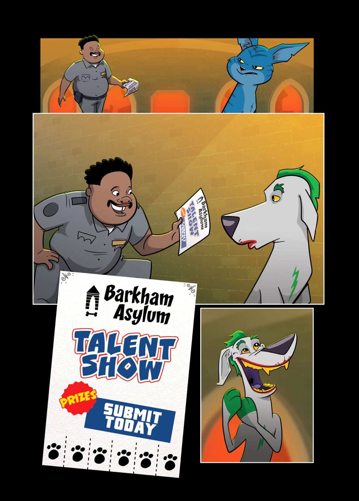Им придется работать вместе, чтобы выяснить, что задумал злой питомец Хьюго Стренджа. Для этого надо выиграть шоу талантов и получить в качестве приза возможность посетить хозяев в Аркхеме. Джокер же должен как-то помочь, да?