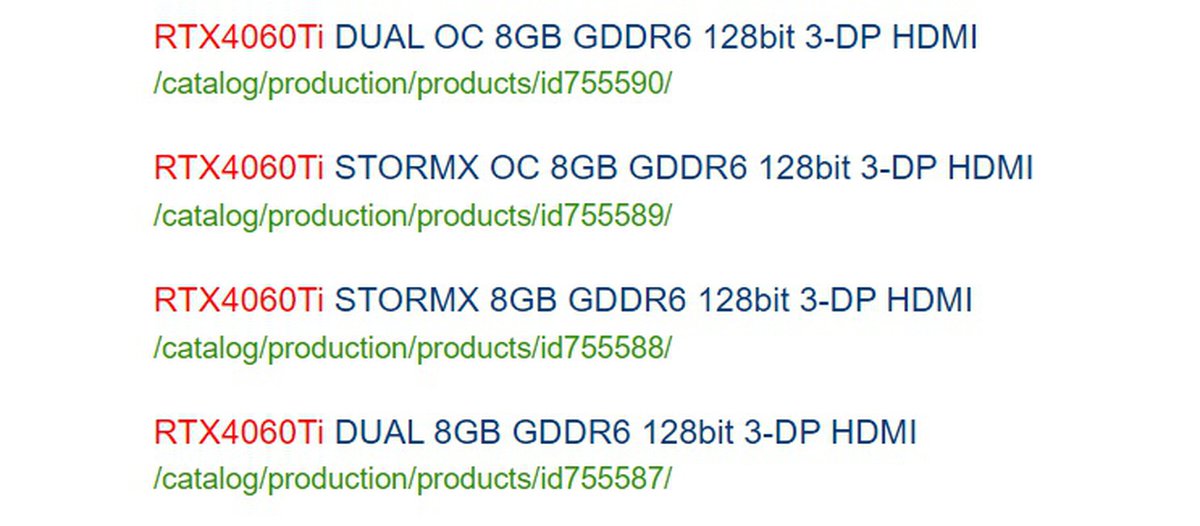 Ранее существование GeForce RTX 4060 Ti подтвердила MSI. Видеокарты заметили в PC, предлагаемых компанией.