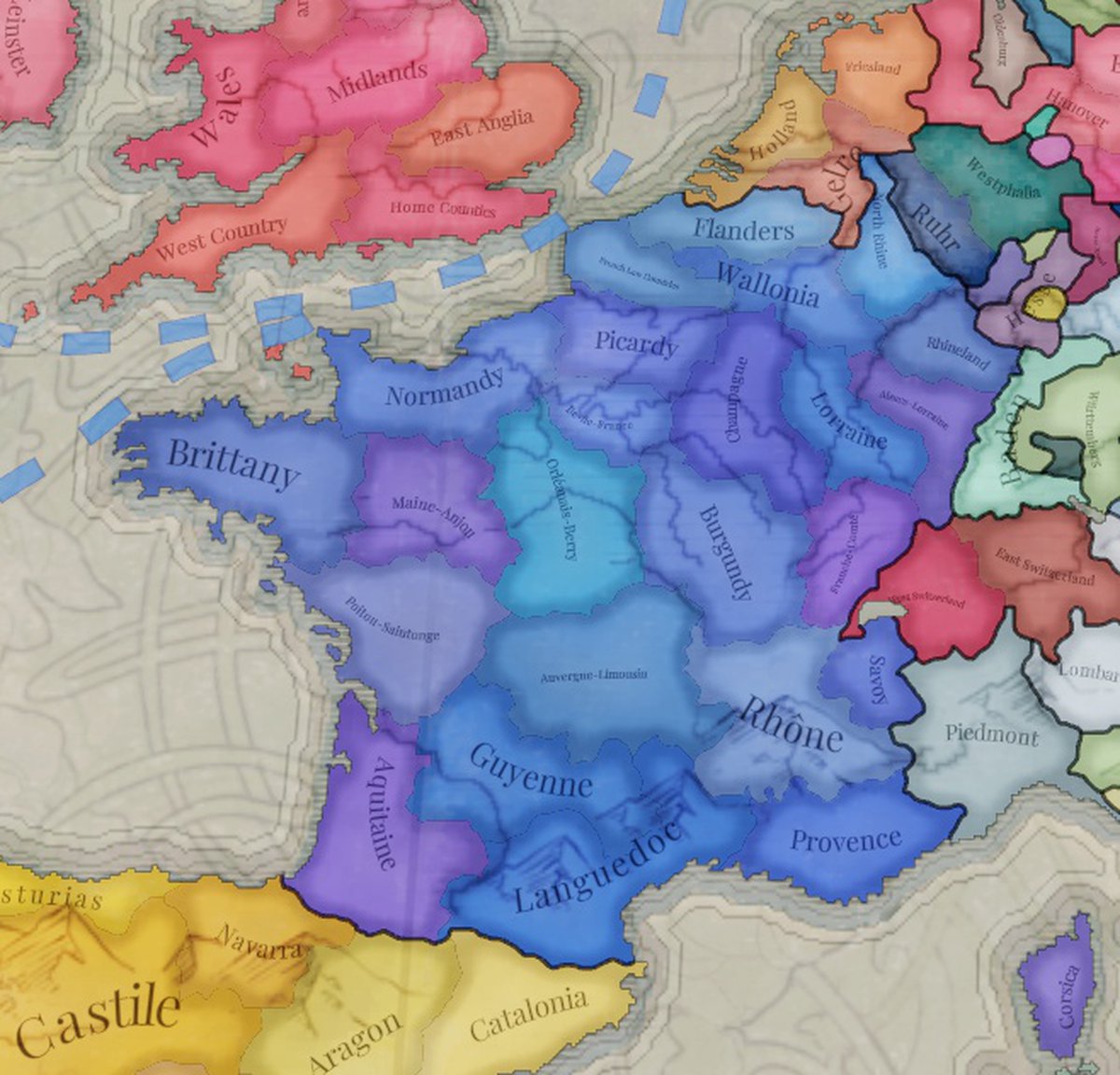 Здесь можно посмотреть на изменение карты в обновлении 1.3. Помимо границ провинций, разработчики добавят две культуры: франкопровансальскую и алеманнскую. Точнее, они разбили швейцарскую культуру на эти две. Также на старте появится новая страна - Савойя.