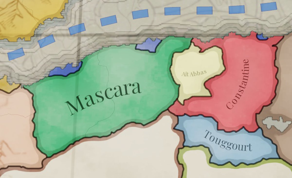 В Африке тоже есть изменения. Алжир разделили на несколько держав, и Франция продолжает пытаться его захватить.
