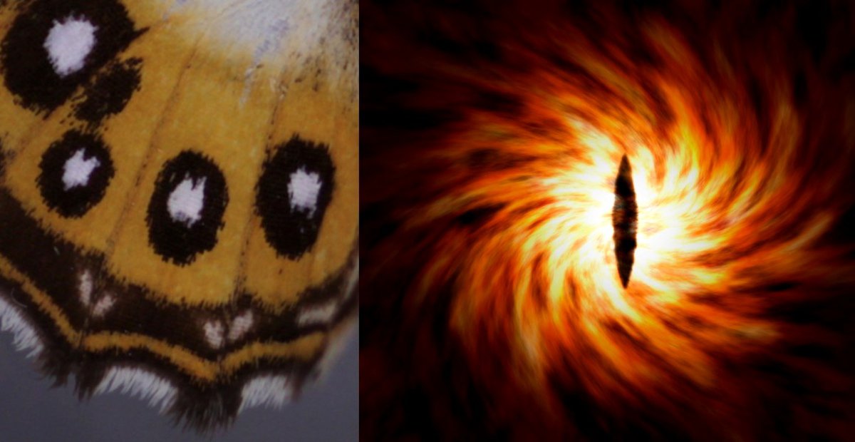 Этот узор выглядит как черные овалы с белыми точками посередине, расположенные на оранжевом фоне. Ученые сочли, что узор на крыльях бабочек напоминает Око Саурона.