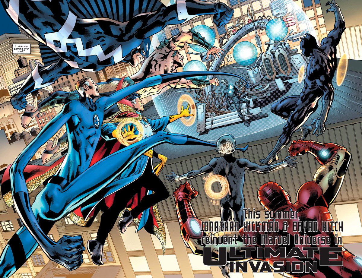 И сейчас Творец настроен особенно решительно - 21 июня выйдет первый выпуск серии Ultimate Invasion от сценариста Джонатана Хикмана, художника Брайана Хитча и колориста Алекса Синклера. Анонс и вариантные обложки, которые в честь этого получат другие комиксы, были показаны в прошлой новости.