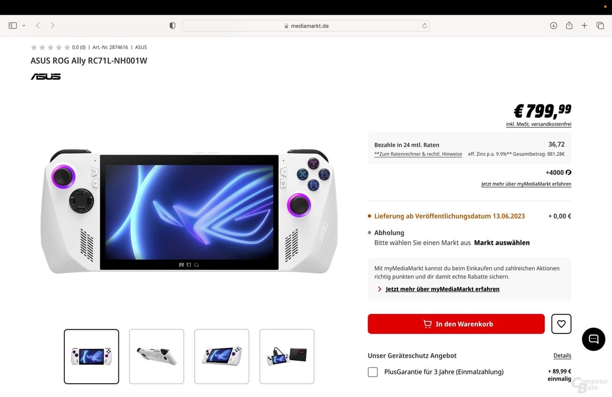 В Европе стартовали продажи портативной консоли ROG Ally от ASUS. Устройства появились у ритейлеров Saturn и MediaMarkt, за консоль в топовом исполнении просят 800 евро.
