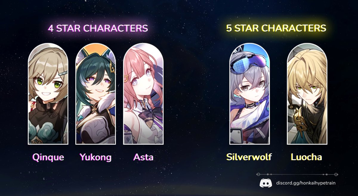 Совершенно новыми персонажами будут только Серебряный Волк и Юконг. Асту и Цинцуэ можно получить в нынешней версии Honkai Star Rail.
