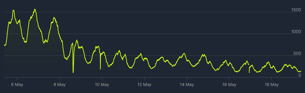 Судя по данным SteamDB, Redfall теряет аудиторию довольно быстро. Например, 12 мая пиковый онлайн мог превышать 500 человек, 15 мая он уже недотягивал до 400.