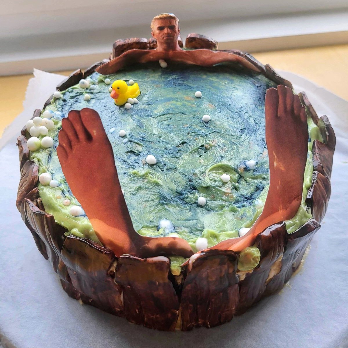 Во-вторых, ведьмака попробовали на вкус. В честь 8-летия The Witcher 3 был изготовлен праздничный торт, воссоздающий вступительную сцену игры — с Геральтом, купающимся в бадье.