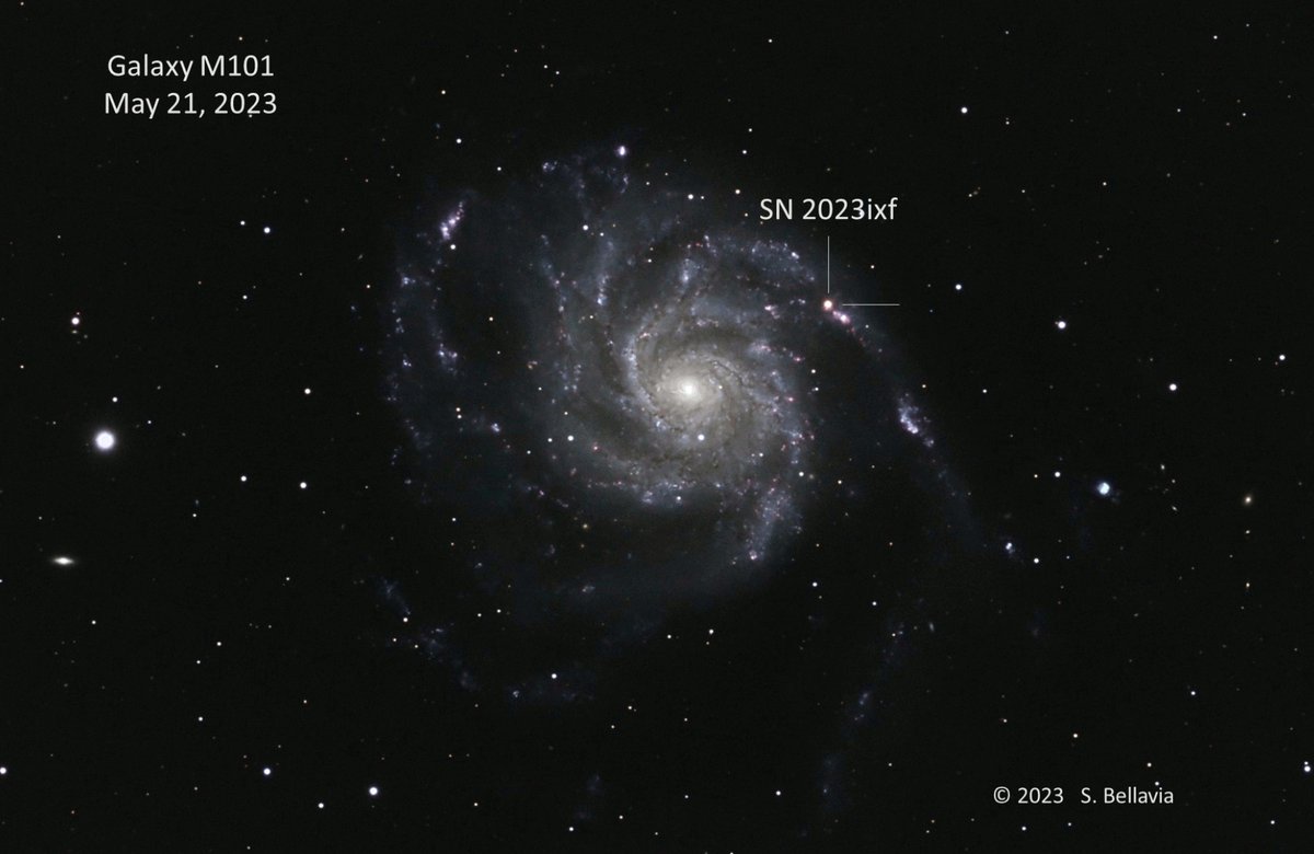Астрономы обнаружили на небе новую сверхновую звезду. Ее заметили в галактике Мессье 101, сверхновая SN 2023ixf находится на расстоянии примерно в 21 миллион световых лет от Земли.