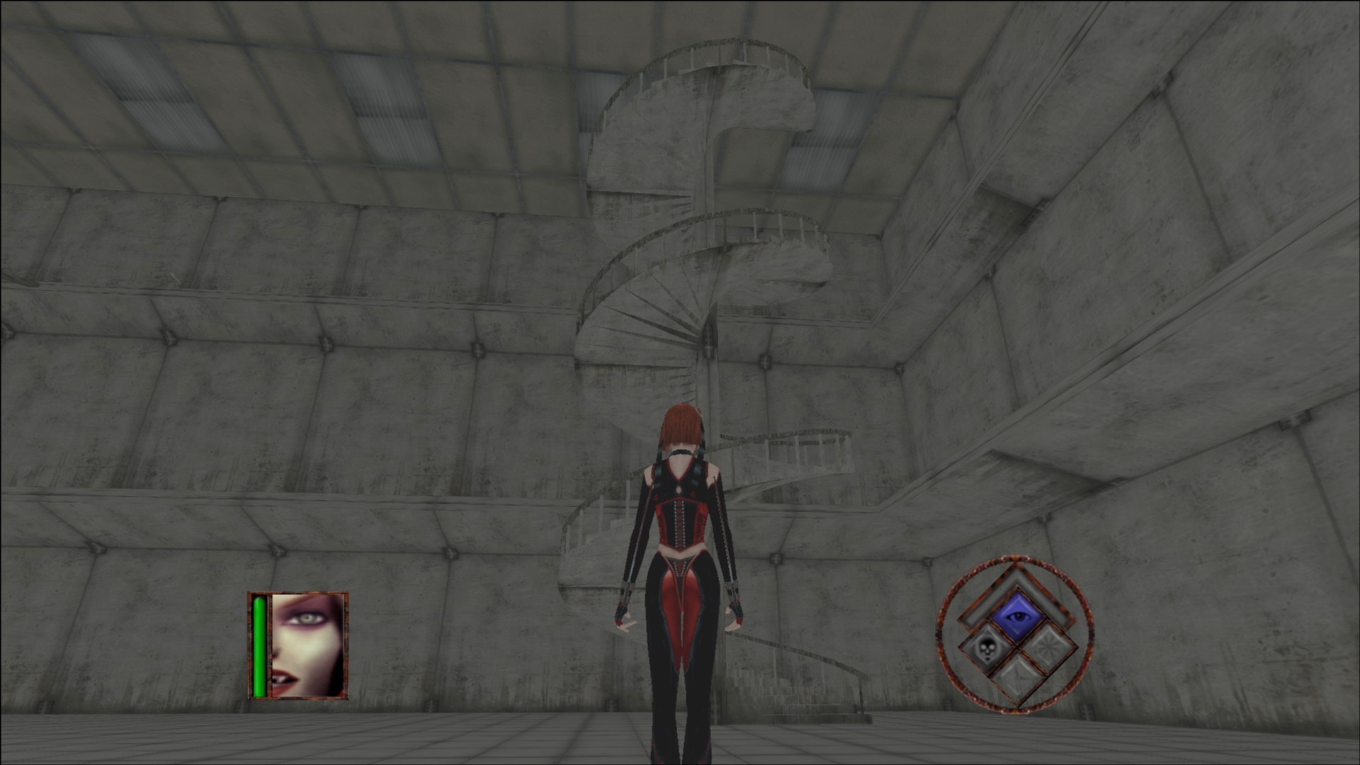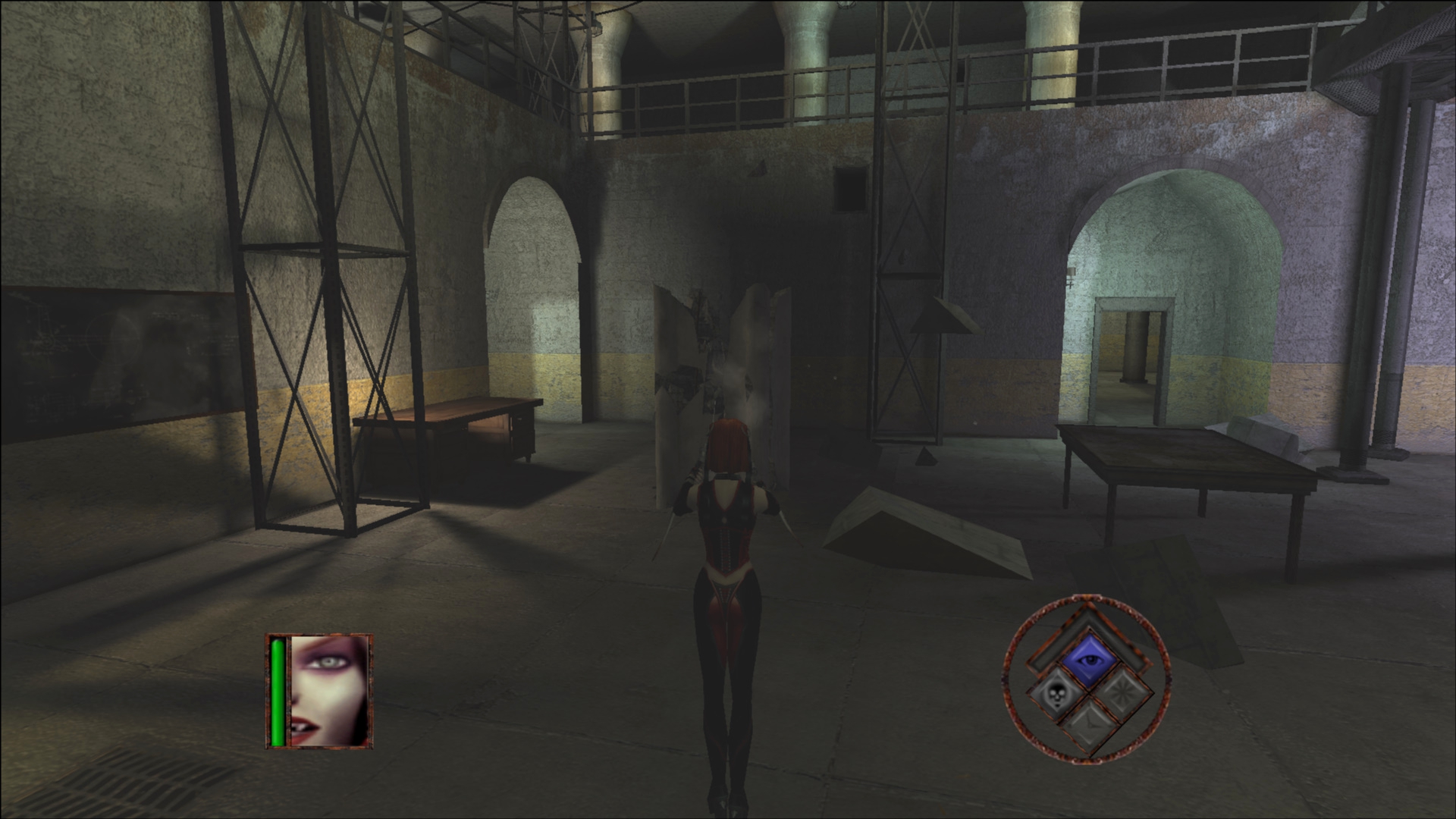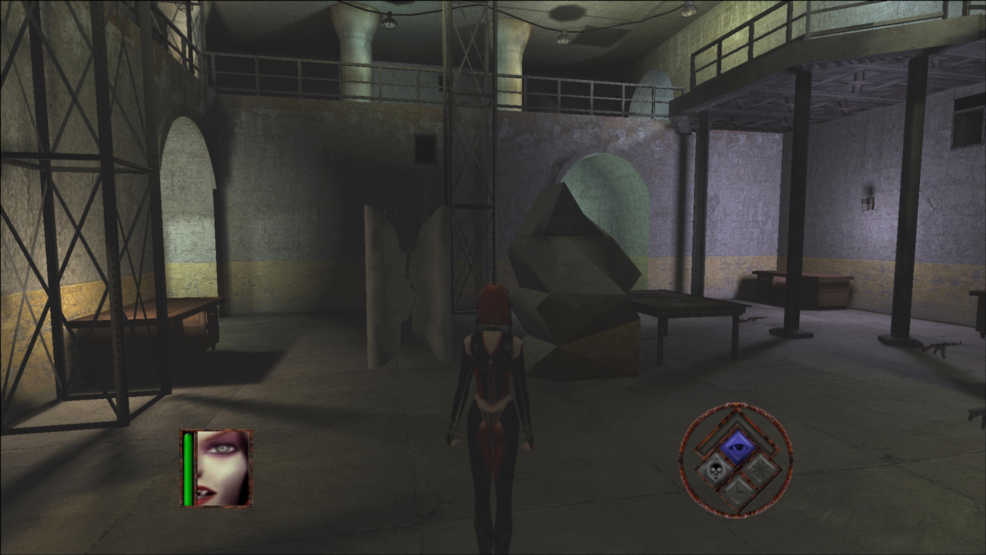 Примечательно, что скорее-всего локация находится в файлах со времён, когда Рейн звали Некрой или Светланой, ибо перила расположены так, будто по ним можно скатится. Для тех, кто забыл, в предыдущей статье я описывал, что Рейн могла скользить по перилам, подобно тому, что она делает во второй части игры.