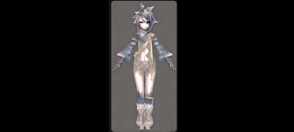 Предполагается, что у персонажа будут повязки на спине и руках, а на ногах — обмотки из бинтов. Девушка якобы носит короткое белое платье с синими ромбами в нижней части и синий пояс.