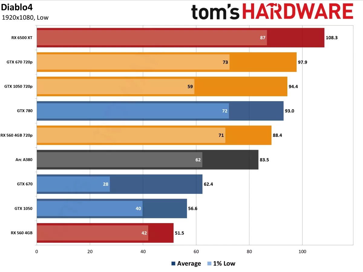 Редакция Tom's Hardware протестировала работу PC-версии Diablo 4 на 20 видеокартах: от топовой GeForce RTX 4090 до давно не выпускающейся GeForce GTX 670. Оказалось, даже на этой карте можно получить приличную частоту кадров.