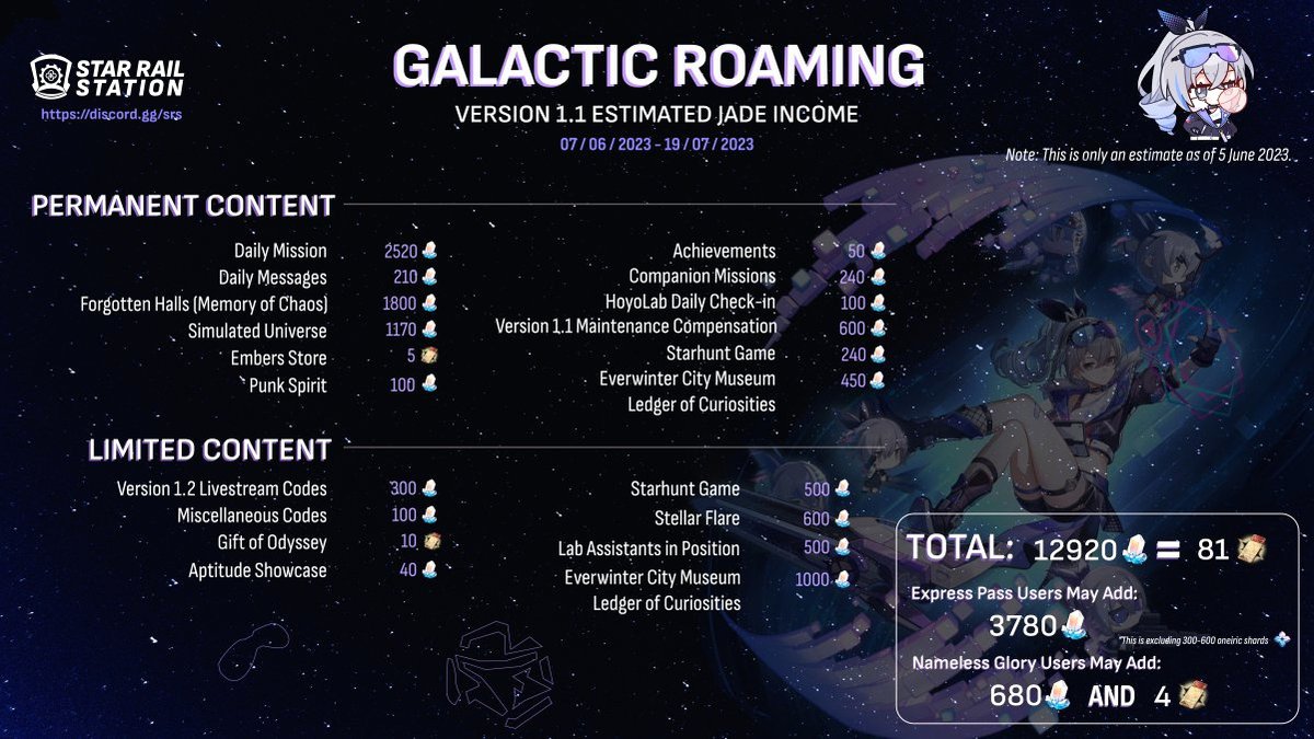 В Honkai Star Rail 1.1 будет почти 13 тысяч Звездного нефрита: инфографика