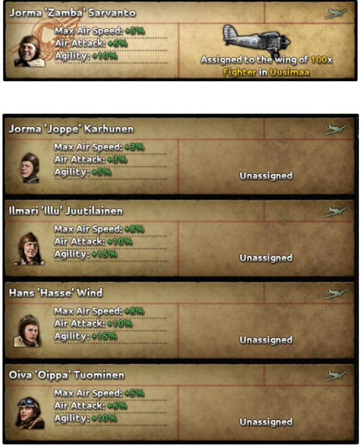 Благодаря решимости и готовности адаптироваться к меняющимся обстоятельствам, финские военно-воздушные силы приобрели репутацию серьёзной силы во время Зимней войны, которая началась в ноябре 1939 года. В этой ветке можно получить немного авиабаз, опыта авиации, бонусов для самолётов и пилотов, а также несколько известных финских асов.