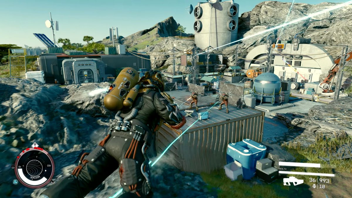 - В распоряжении игрока есть реактивный ранец: можно полетать над врагами и закидать их гранатами.