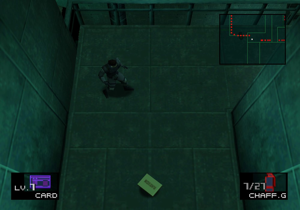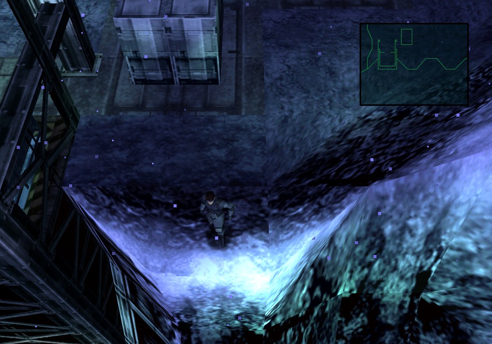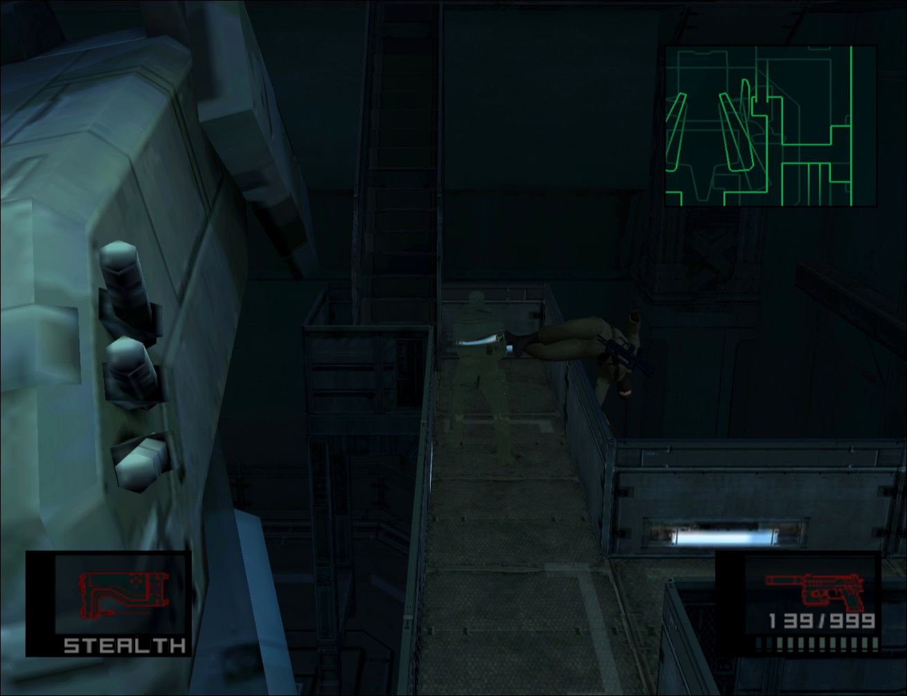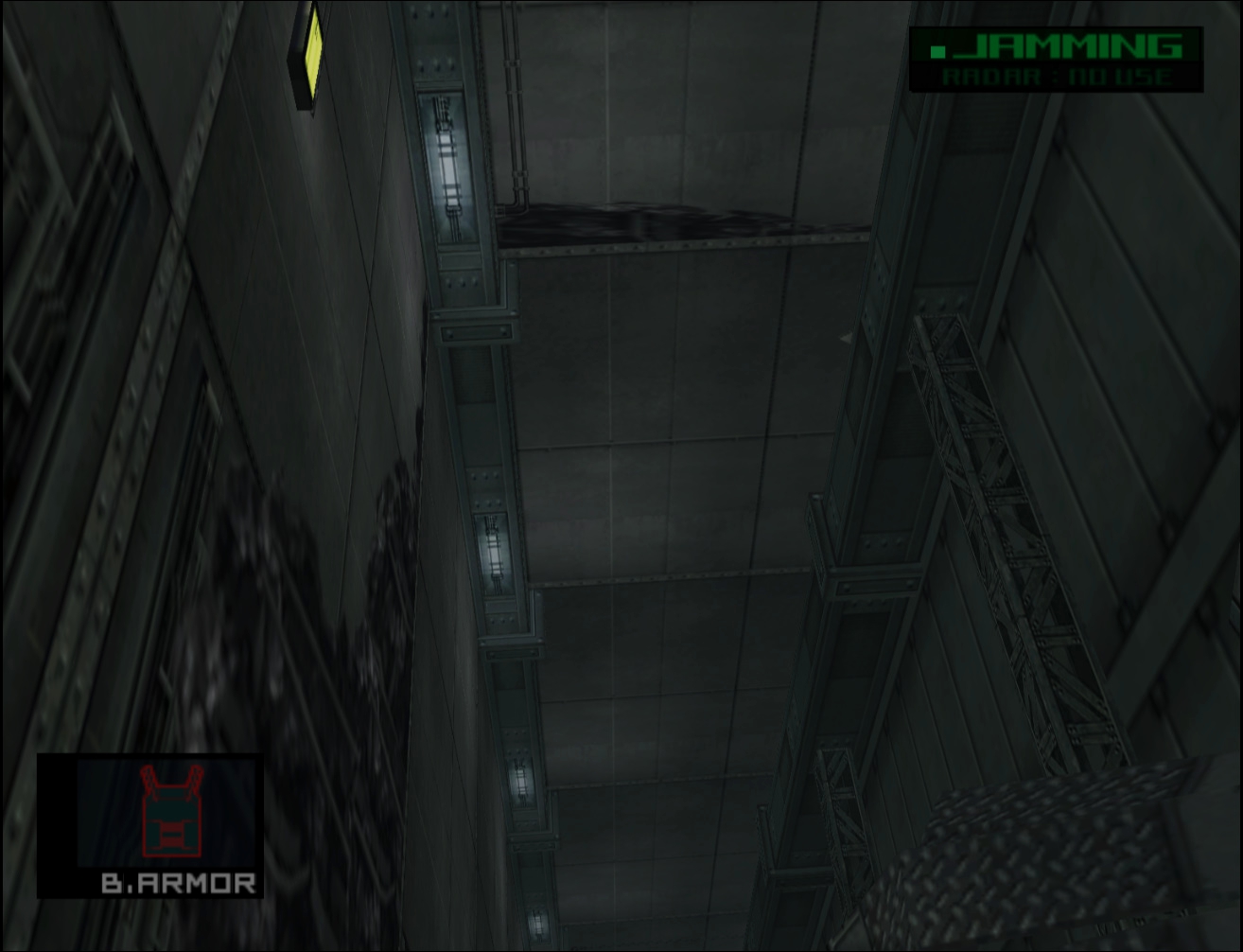 Проход к пункту активации Метал Гира выполнен иначе, если в оригинале локация разделена на несколько секций при помощи вертикальных лестниц, в то время как в ремейке междуэтажные лестницы, что даёт больше удобства в перемещении.