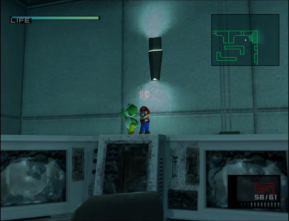 В лаборатории Отакона стоят фигурки Марио и Йоши, персонажи игр Nintendo. Если выстрелить по Марио – появится характерный звук прибавления жизни и подпись над головой "1UP". А если выстрелить по Йоши, то он издаст звук.