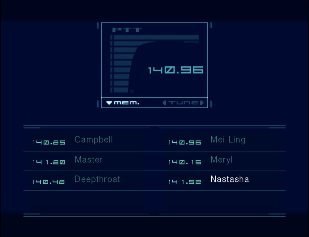 Все частоты кодека, которые проговариваются персонажами во время диалогов – автоматически записываются. Таким образом, если вы никогда не звонили Наташе – она всё-равно будет числиться в памяти кодека. В оригинальной игре такого нет и частоты кодека сохраняются только после совершения звонка.