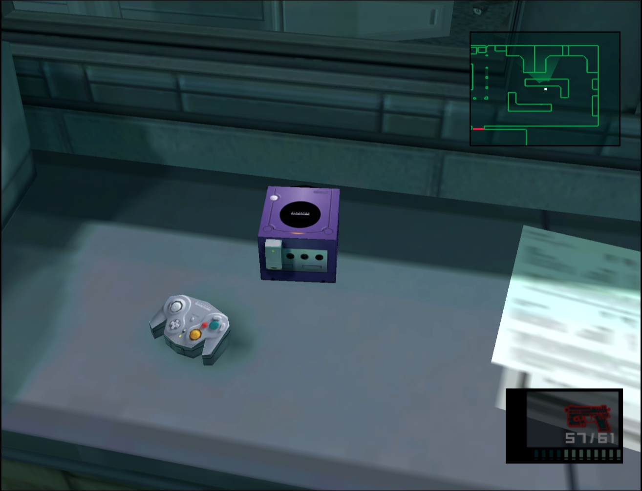 Во всё той же лаборатории Отакона в оригинальной игре стояла игровая консоль, внешне похожая на Sega Saturn, но с геймпадом от PlayStation. В ремейке эту консоль заменили на GameCube.