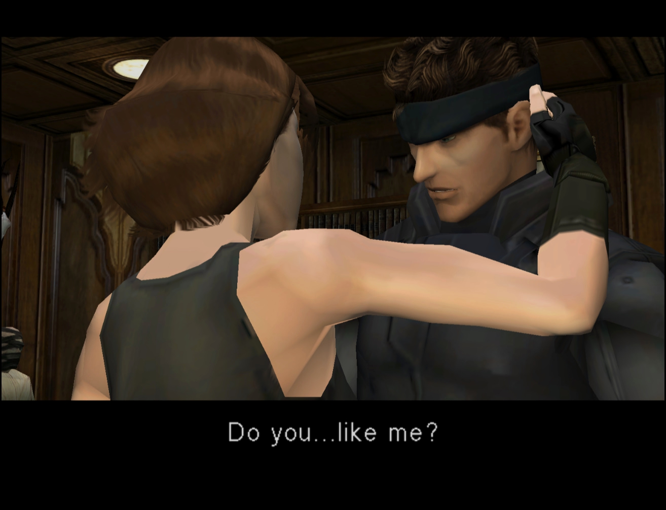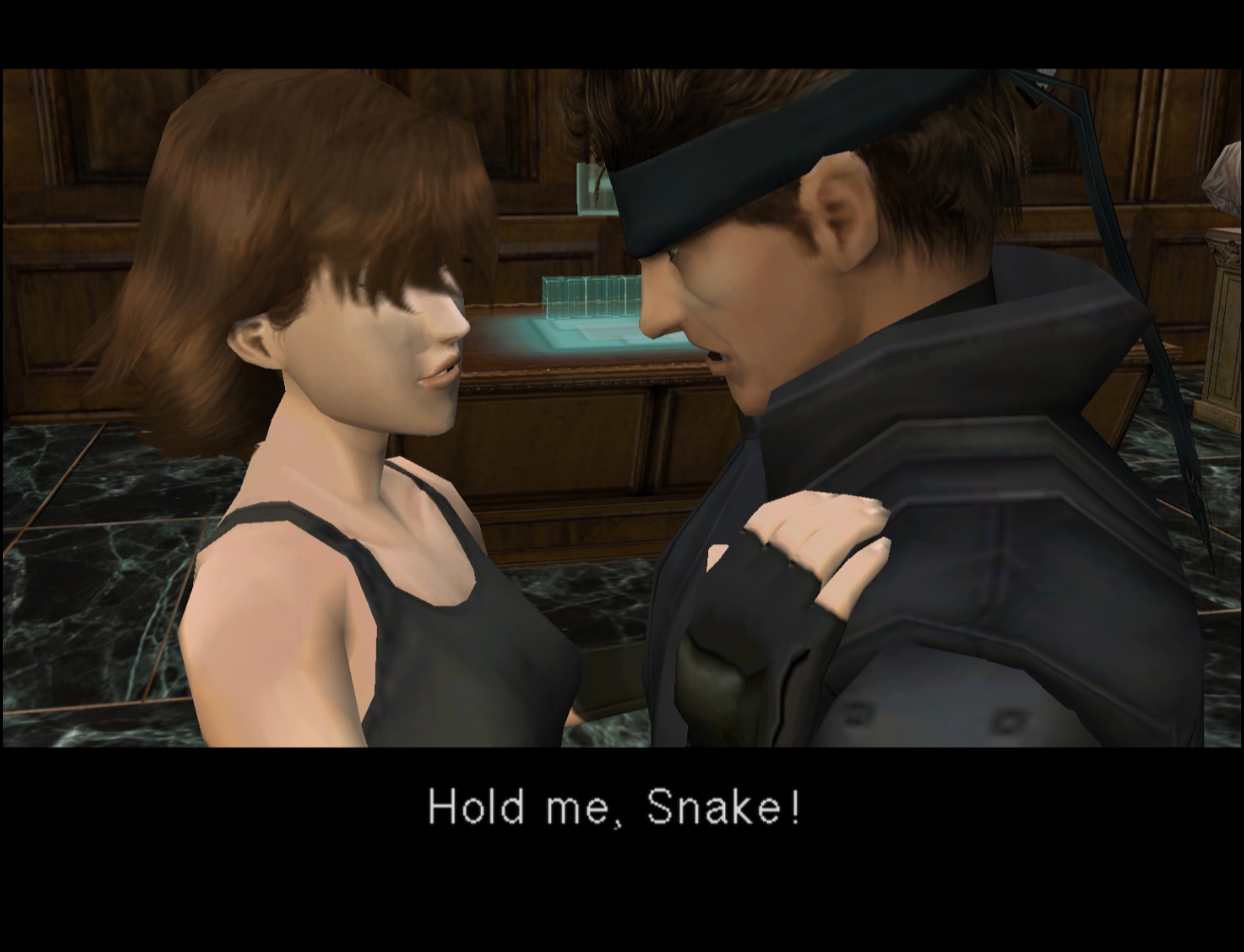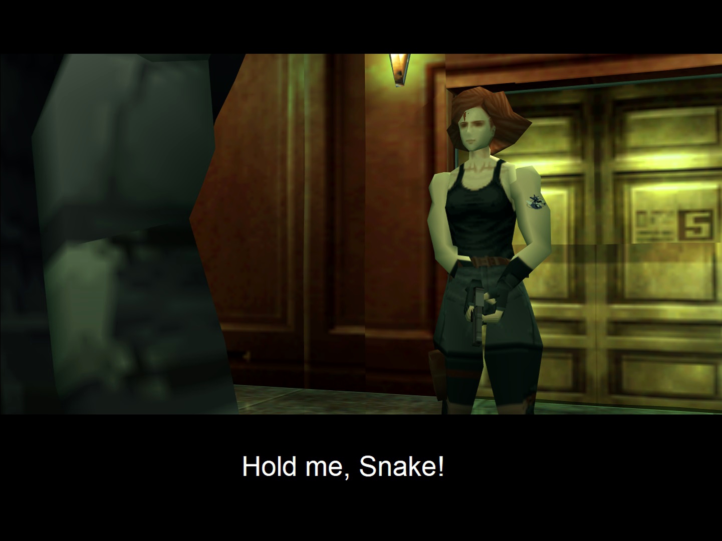 Как мне кажется, сцена в ремейке выглядит куда логичнее, ибо в оригинале она противоречит сама себе. Что в ремейке, что в оригинале, Мэрил утверждает, что её обучали не обращать внимание на мужчин и не влюбляться в них. Однако, как мы видим в обеих играх – Мэрил по уши втрескалась в Снейка. А в Metal Gear Solid 4: Guns of Patriots так и вовсе вышла замуж за Джонни Сасаки.