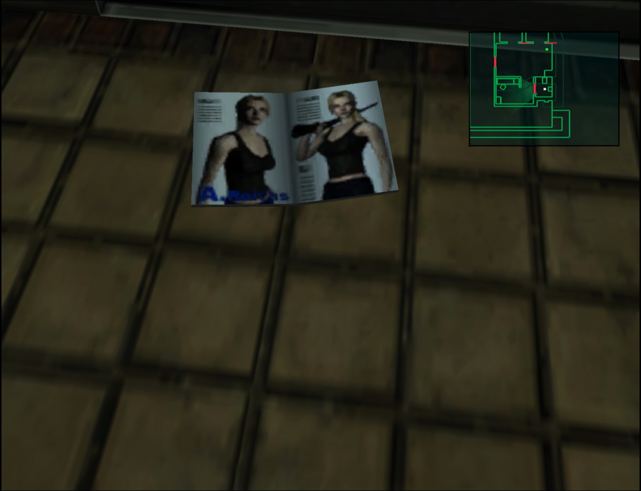Журналы – подбирая их можно раскидывать по локациям, чтобы отвлекать охранников. Подобная функция появилась и в Metal Gear Solid 2: Sons of Liberty. В данной игре журнал не эротический, а всего-навсего местная адаптация игрового журнала Edge. На открытых страницах красуется Александра Роивас, героиня игры Eternal Darkness: Sanity’s Requiem, разработанная Silicon Knights для PC и GameCube.