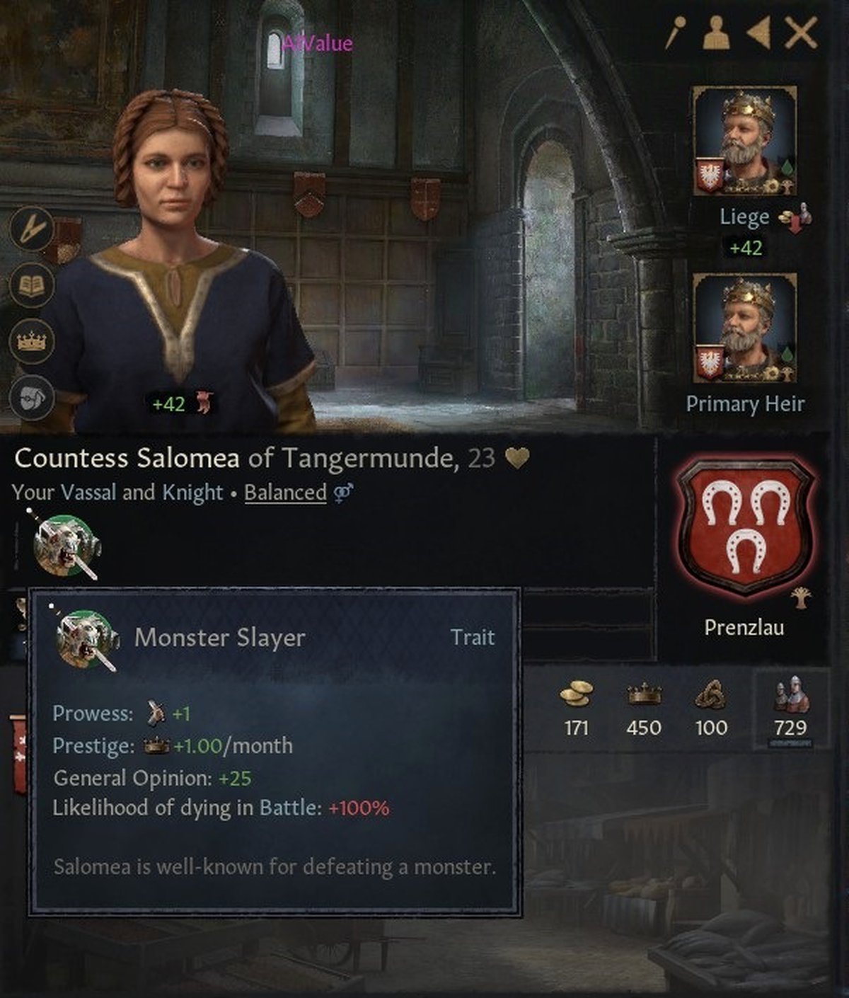 События с чудищами могут принести как позитивную черту "Убийца монстров", так и негативную, если давать бесам спокойно поедать детей придворных. Иконки этих черт представлены на обложке новости.