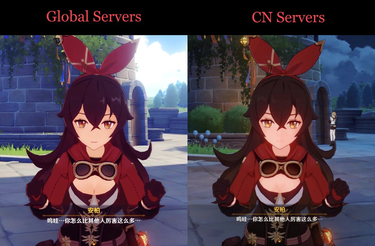 Примечательно, что в 2022 году новые китайские облики появились и в других странах мира — но только в качестве альтернативных костюмов. Китайскую версию Эмбер от 2023 года, видимо, не стали делать еще одним альтернативным скином для западных игроков — пока новый дизайн есть только в Китае.