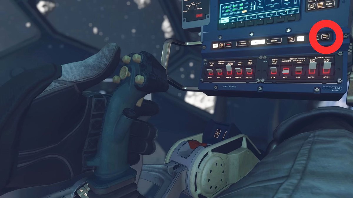 Например, редакция PCGamesN присмотрелась к кокпиту корабля главного героя и обнаружила кнопку Rage Quit. Так называют момент, когда игрок в ярости бросает игру (например, во время особо сложного боя с боссом или неудачного мультиплеерного матча), не в силах продолжать сражение.