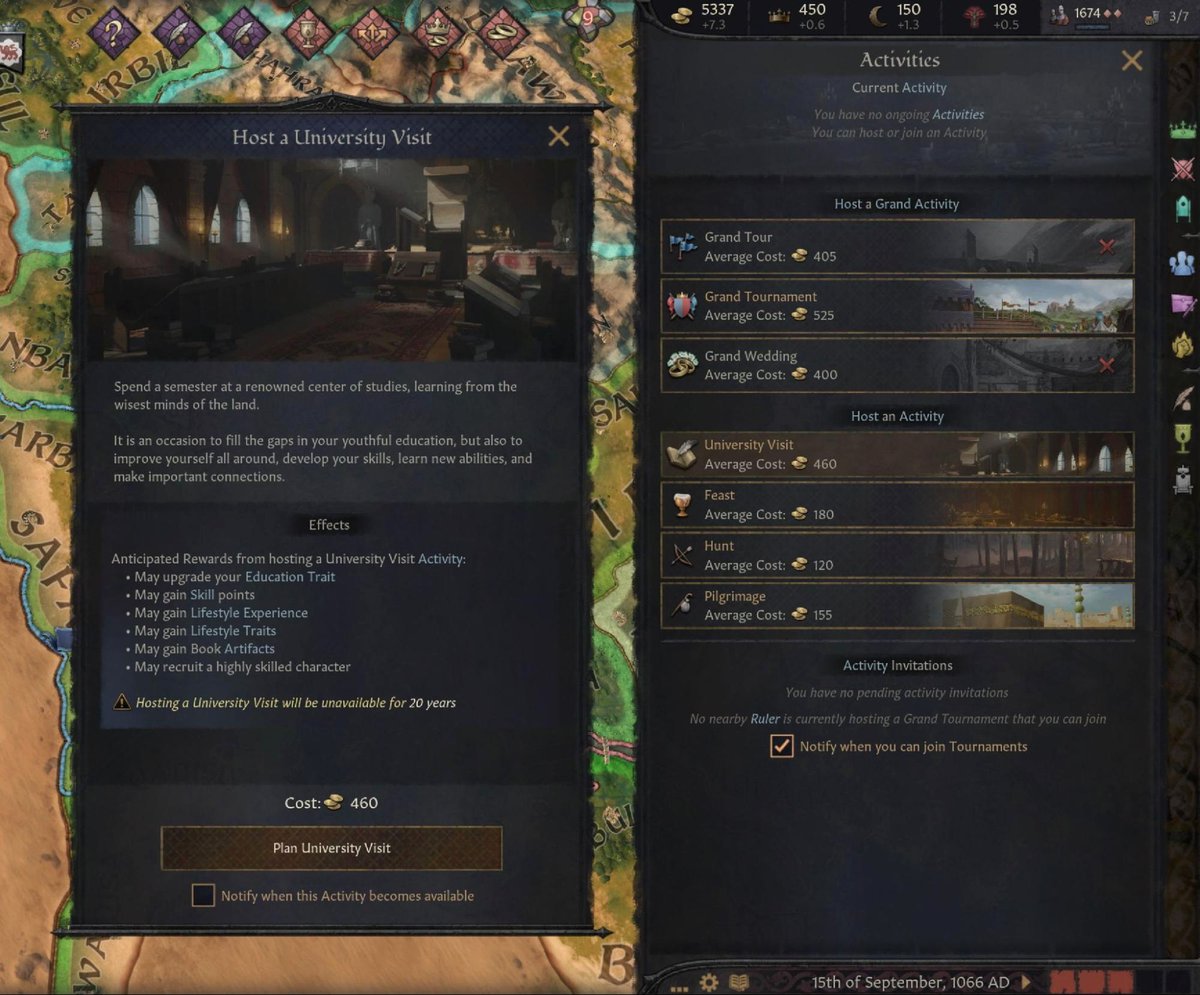 - Персонаж игрока не сможет стать учителем и вести занятия. Это сделано, чтобы герою не приходилось крутиться у университета всё время, плюс правителя нельзя сделать придворным, и студент потеряет шанс нанять себе во двор учителя.