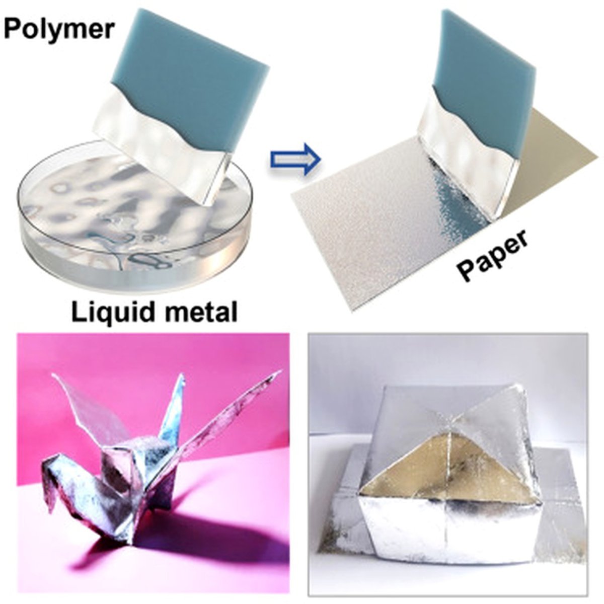 Исследователи изготовили новый тип жидкого металла, состоящий из сплава висмута, индия и оксида олова. Такой сплав можно нанести на бумагу, причем он будет держаться без клея, а бумага сохранит гибкость.