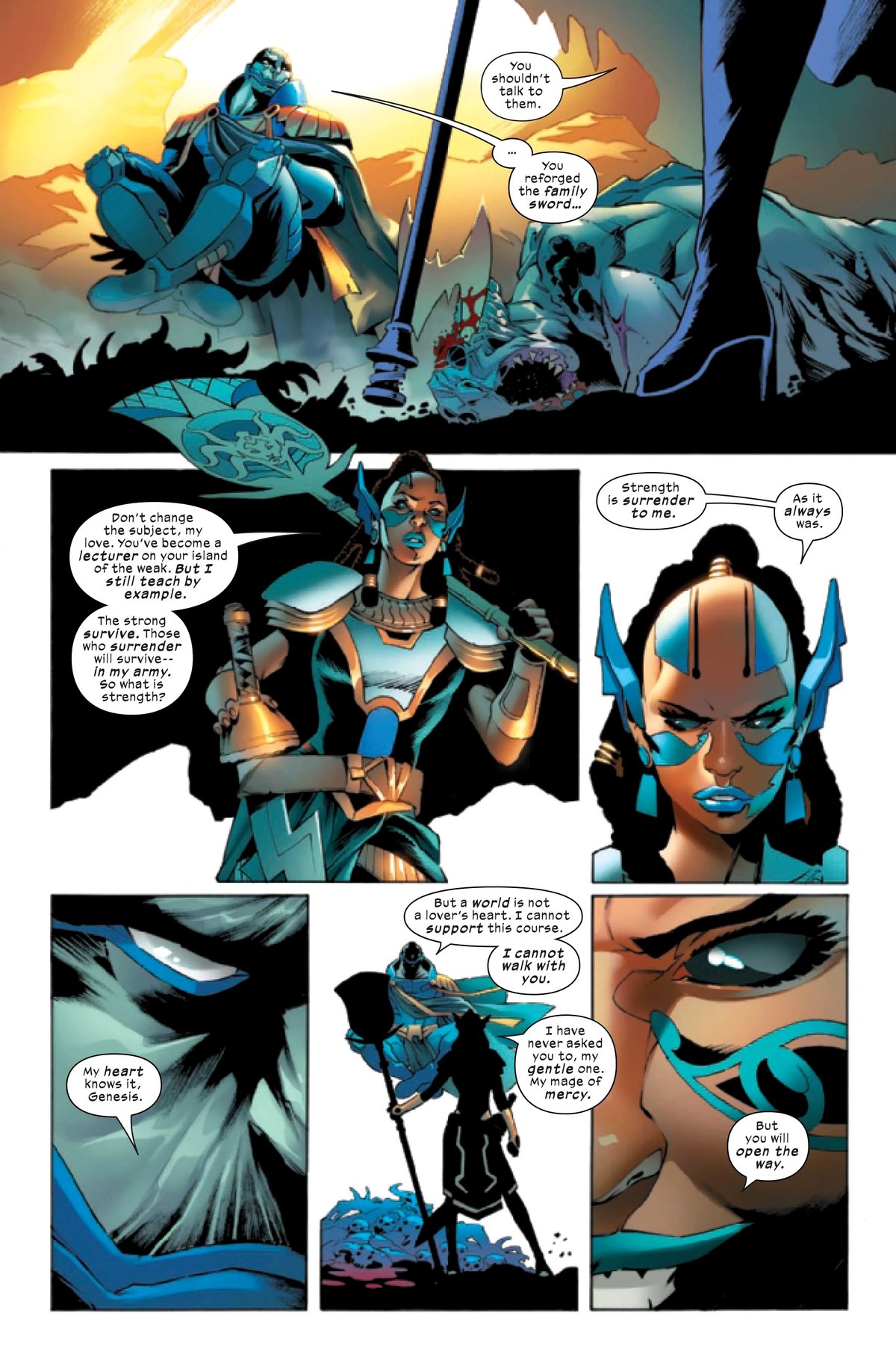 Демону ответ не нравится, однако разговор прерывает жена --I A I--. Также она даёт свой ответ на вопрос - сила в выживании, а выживет только тот, кто сдастся ей. Генезис перековала семейный меч, но муж не пойдёт с ней захватывать мир. Ей же достаточно, чтобы --I A I-- открыл проход.