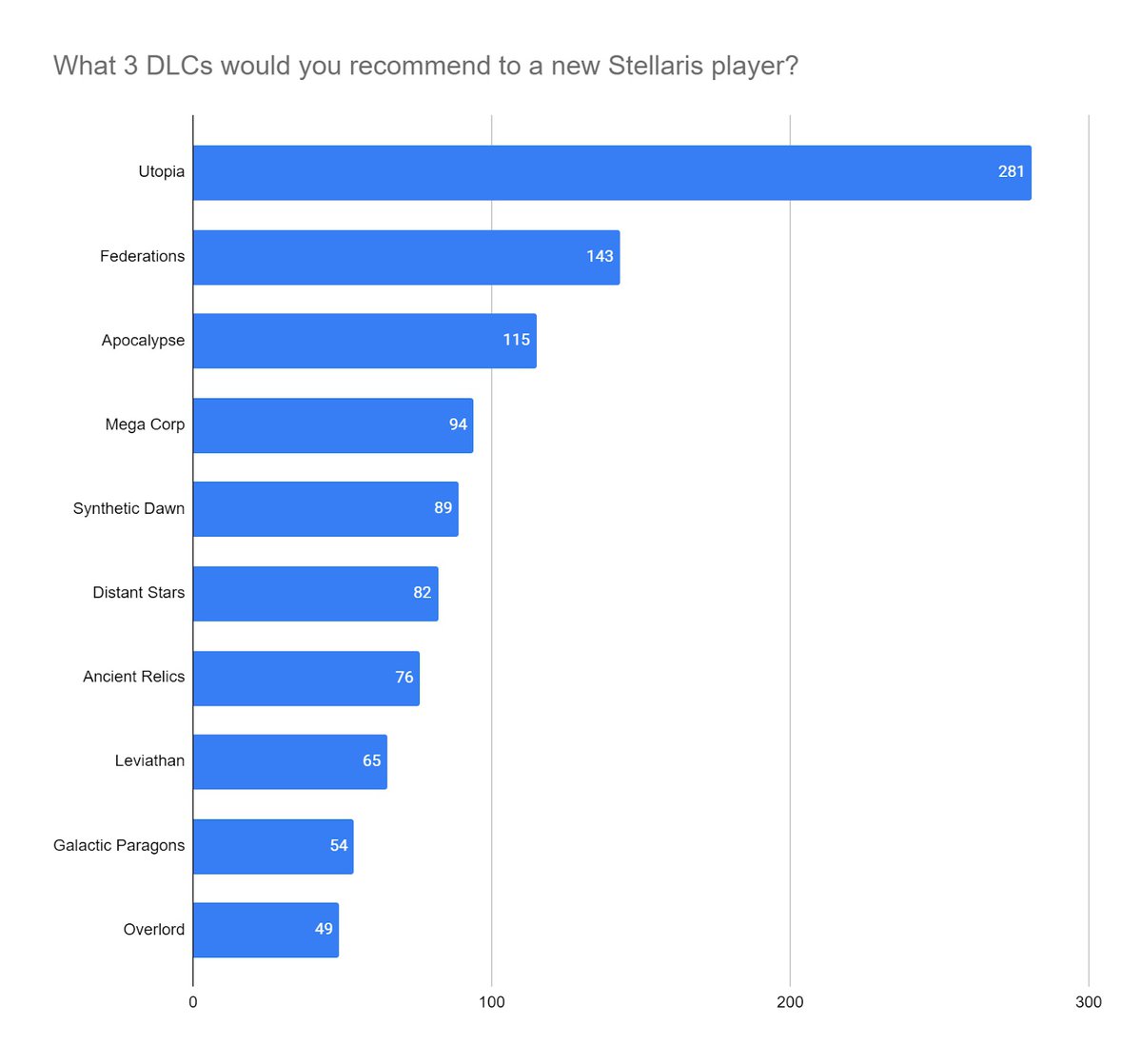 Говоря о DLC, разработчики недавно провели опрос, какие расширения стоит рекомендовать новичкам. В топ 3 дополнений по ответам вошли: Utopia, Federations и Apocalypse.