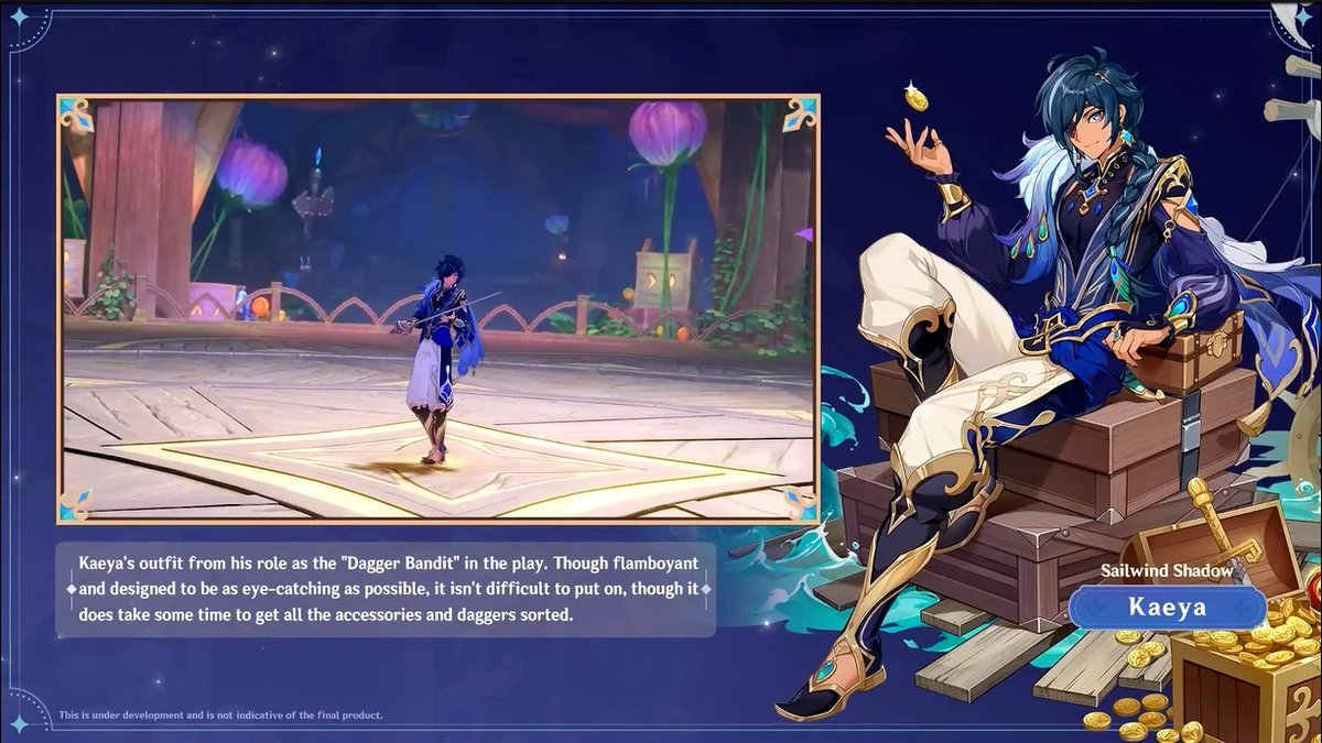 Обновление введет в Genshin Impact два альтернативных костюма — для Кли и Кэйи. Предполагалось, что костюм Кли будет с 5 звездами редкости, а наряд Кэйи — с 4 звездами редкости, но во время презентации это не подтвердили.