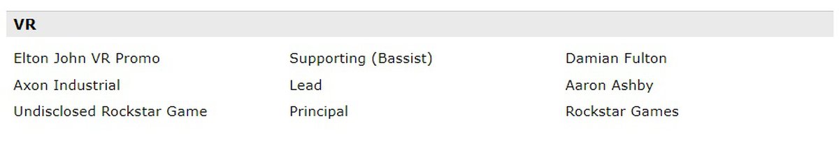 В резюме нет никаких подробностей проекта: он обозначен просто как Undisclosed Rockstar Game. По словам Майкла, он играет в проекте одну из главных ролей, но мы не знаем, о чем идет речь: это может быть и озвучка, и захват движений.