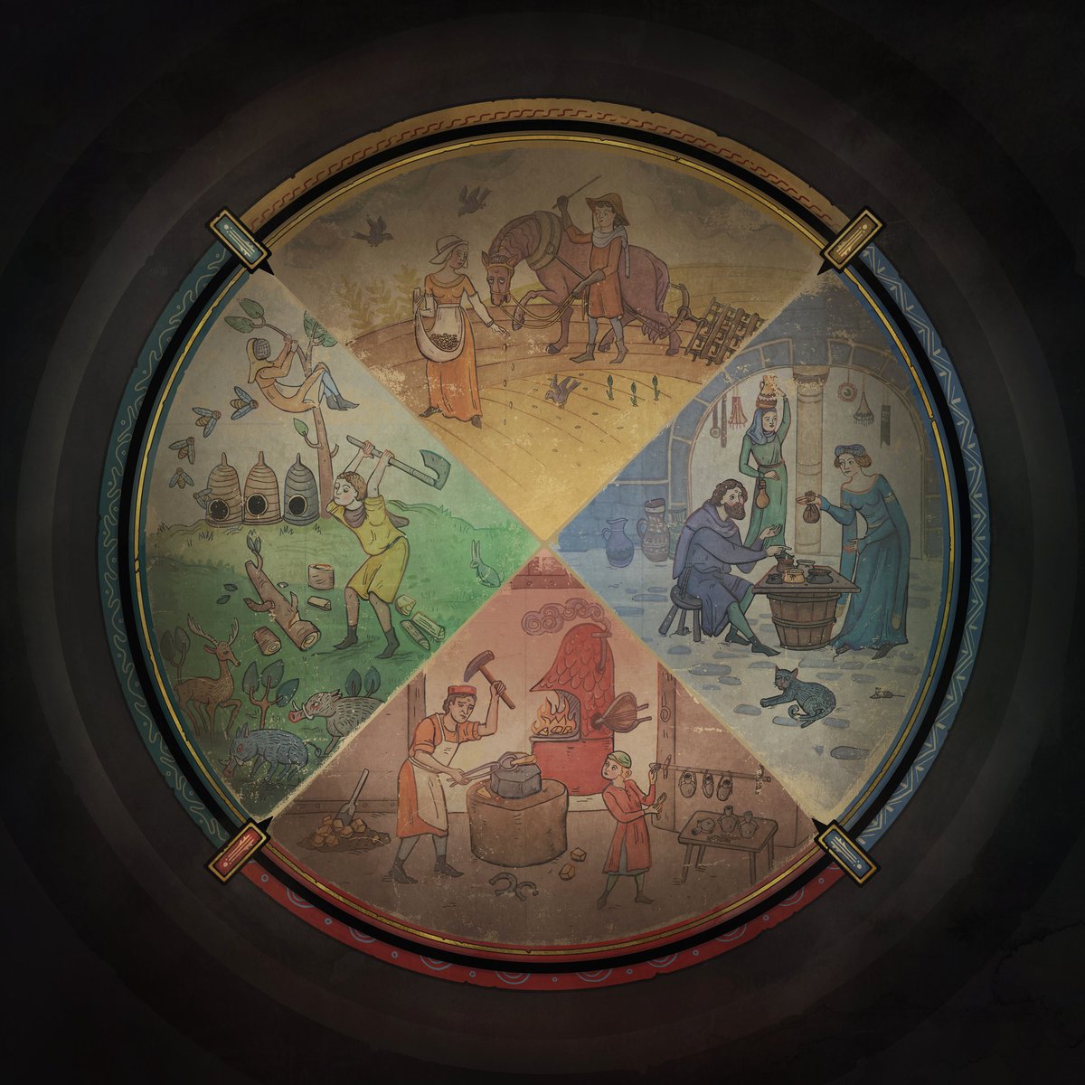 Разработчик средневековой стратегии Manor Lords Грэг Стикзен показал, как будет выглядеть древо развития поселения. При его создании Грэг и художник Basia вдохновлялись Манесским кодексом.