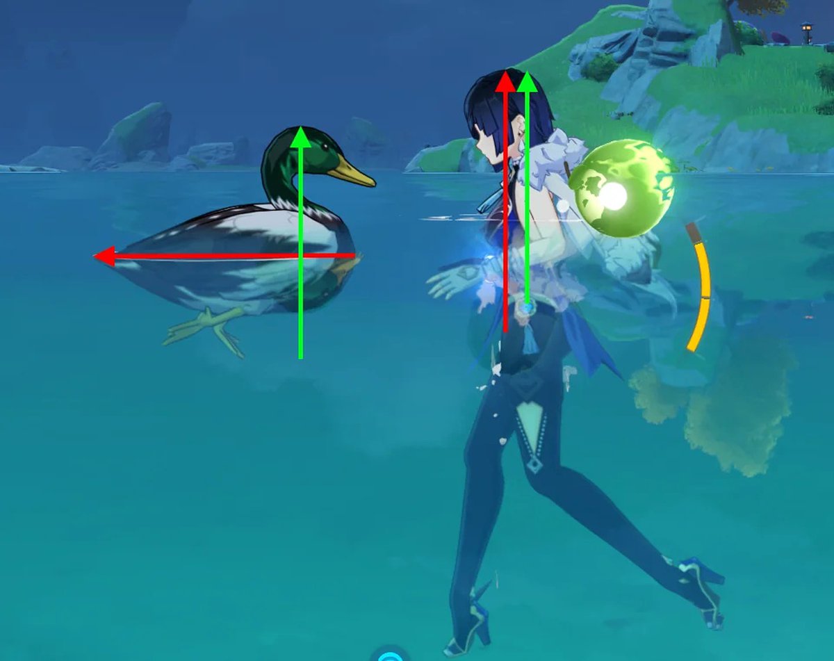 Поместив рядом с уткой свою Е Лань, фанат провел грубое сравнение и понял: птица по размеру примерно как половина персонажа. Другими словами, утка в Тейвате может быть размером с очень крупную собаку.