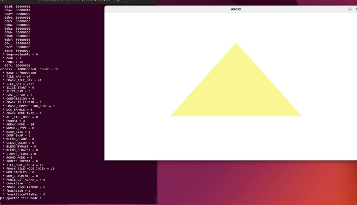 Впрочем, возможностей RPCSX достаточно для прохождения начальных тестов. Например, сейчас эмулятор может отрендерить тестовый треугольник.
