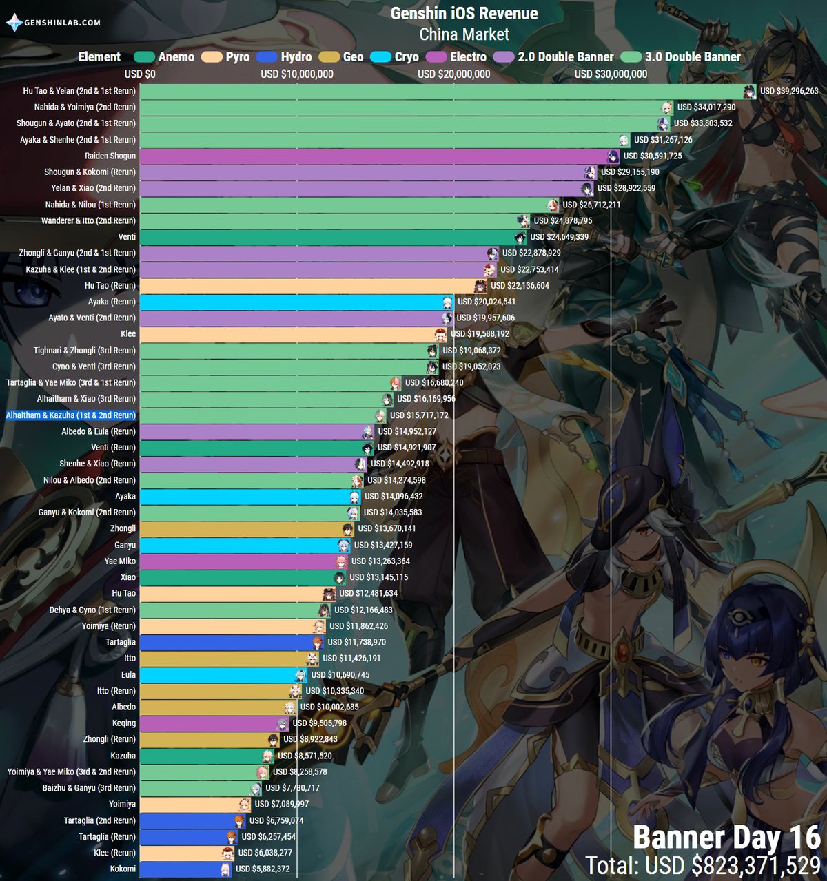 Для сравнения: предыдущий баннер с Еимией и Яэ Мико собрал только $9.154 миллиона. Предшествовавший ему баннер с Гань Юй и Бай Чжу установил антирекорд среди баннеров с двумя 5-звездными героями, собрав $9.1 миллиона.