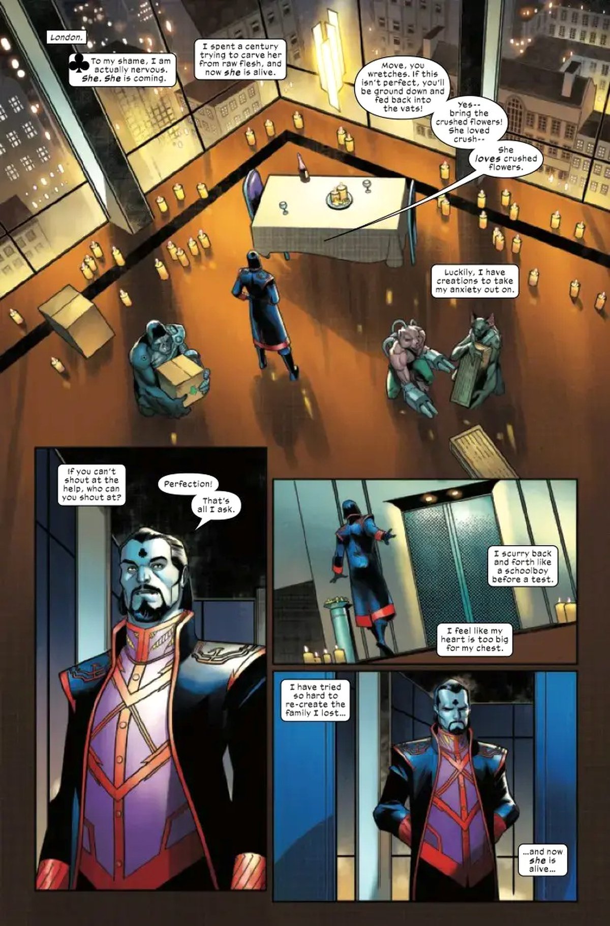 Далее переносимся в Лондон настоящего. Здесь другой клон, доктор Стазис, ждёт свидания с Праведной Матерью. Похоже, этому способствует его старая любовь к жене. И да, он привык считать, что он - настоящий Натаниэль, а Мистер Синистер - клон.