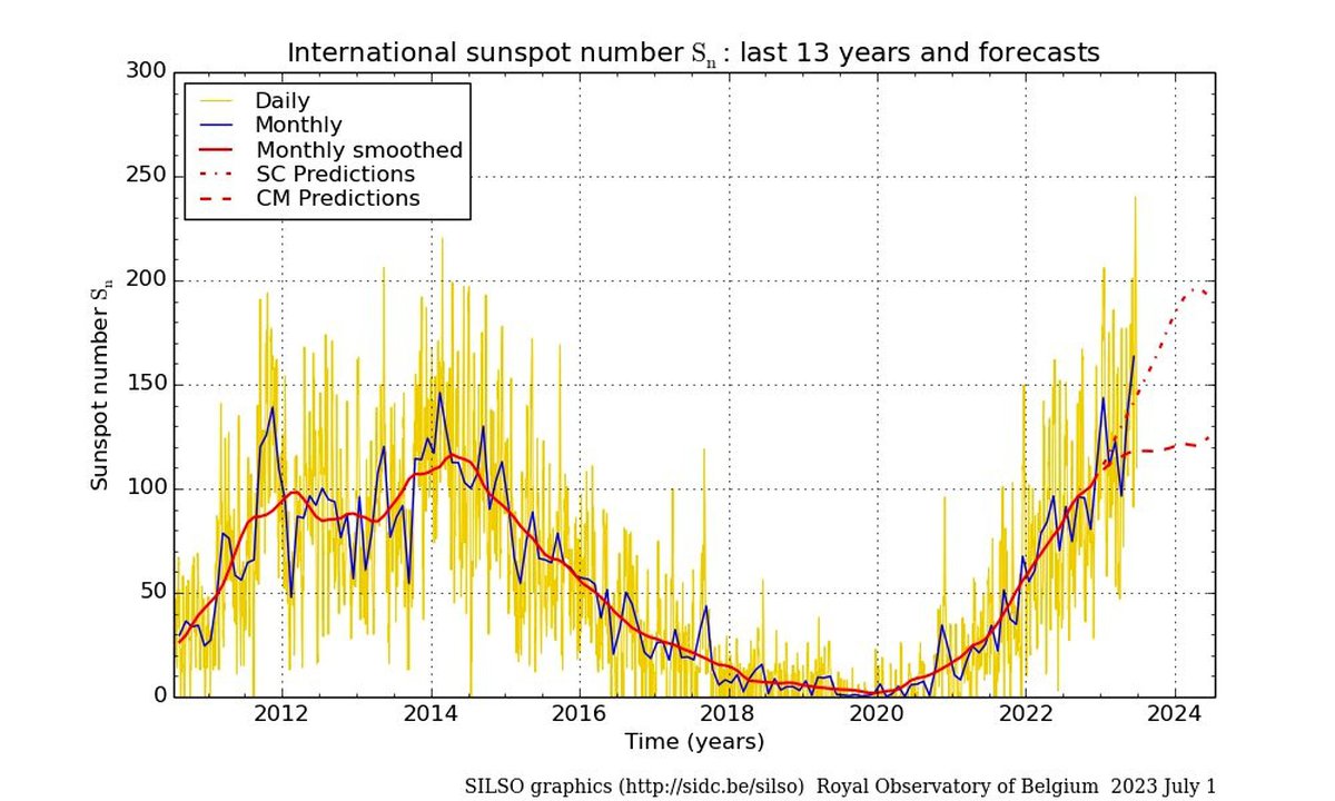 Ранее предполагалось, что в нынешнем цикле на Солнце будет фиксироваться максимум 125 пятен в месяц. Согласно новому прогнозу, реальное количество пятен, обнаруживаемых каждый месяц, может достичь 200.