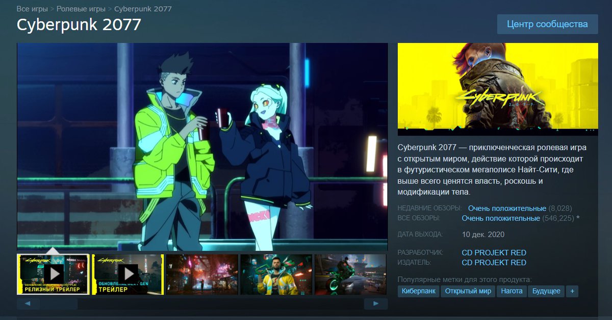 Оценка Cyberpunk 2077 в Steam впервые стала «очень положительной» — через 2.5 года после выхода