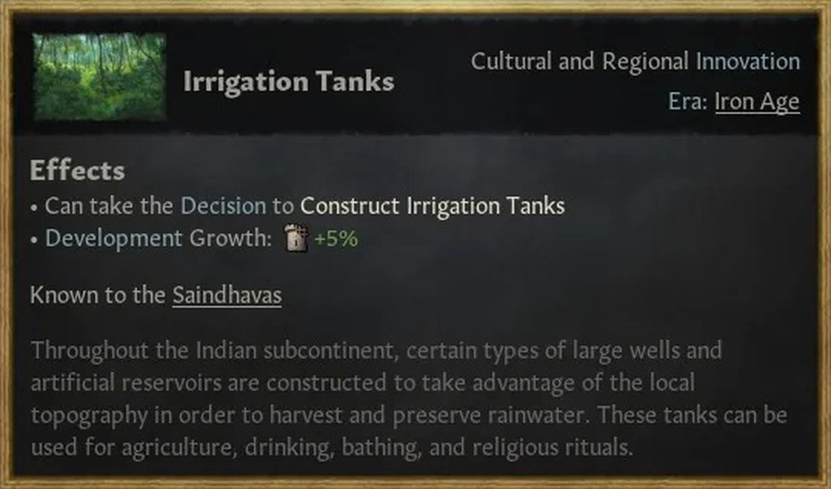 Ещё будут традиции "Строители ступенчатых колодцев" и "Системы Вева". Первая усилит бонусы от резервуаров, вторая снизит их цену. Культуры саураштра и сингальская получат их со старта.