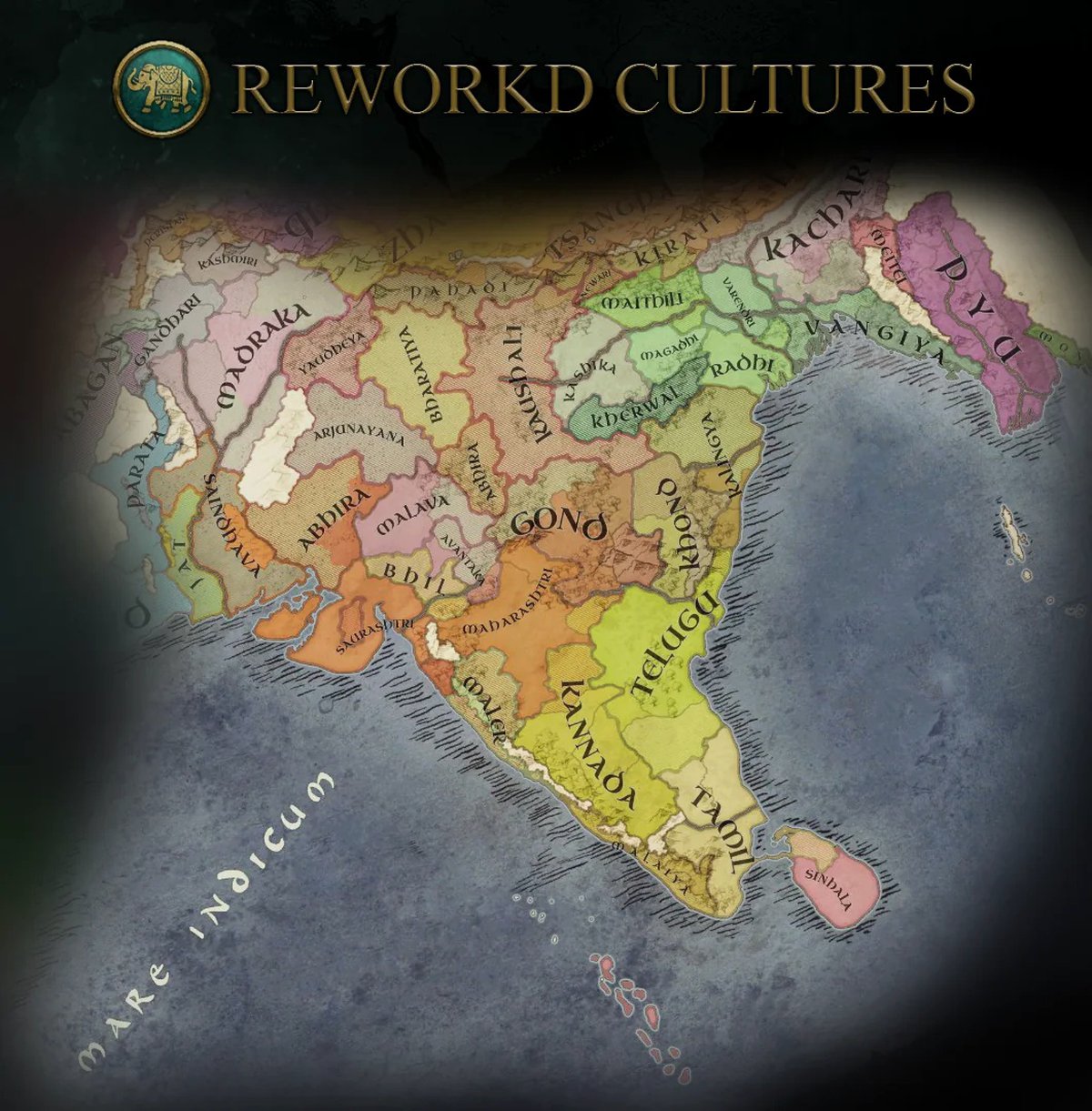 Изменили и культуры в Индии. На релизе мода там всё было очень плохо, авторы просто взяли и адаптировали контент ванильной игры, но между Средневековьем и поздней античностью разница была больше.